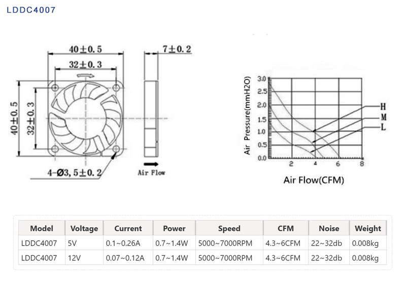LD Customized DC4007 Mini Fan,The cooling fan, with its ultra-thin size, low power consumption, and low noise characteristics, has become an ideal cooling solution for space-constrained electronic devices.