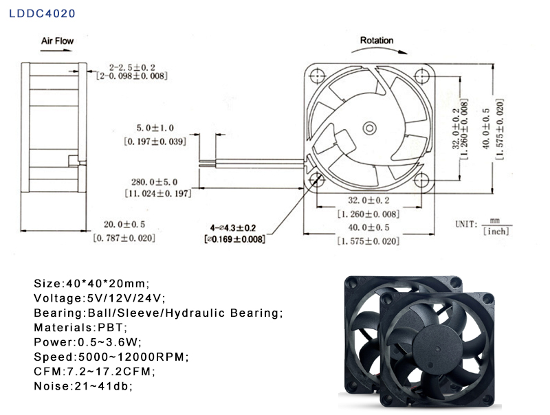 LD Customized DC4020 is a small 40×40×20mm DC axial cooling fan, featuring ultra-compact size, medium to high air pressure, high rotational speed, and long lifespan, making it a mainstream choice for cooling compact devices.Suitable for PCB board-level, module-level, and handheld devices with extremely limited space.