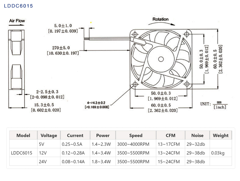 LD Customized DC6015 Fan It is an ideal cooling solution for space-constrained environments, with the design focusing on balancing the four key elements of cooling efficiency, noise control, lifespan, and cost.