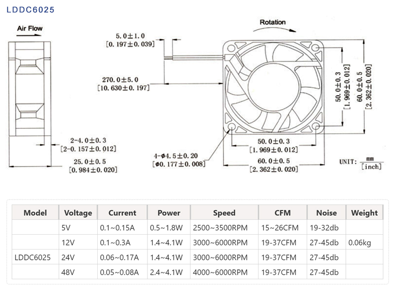 LD Customized DC6025, The design focus of the DC6025 cooling fan is on balancing performance and reliability, while also considering noise control and intelligent control functions. It is widely used in various devices ranging from consumer electronics to industrial automation and is one of the core components of modern electronic equipment cooling systems.
